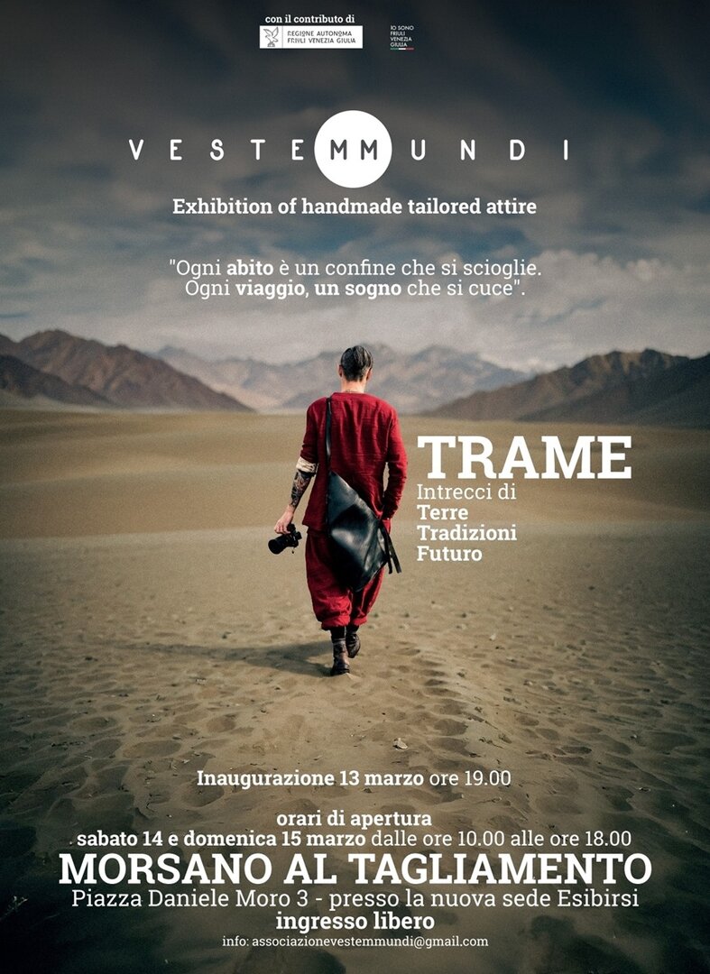 A Morsano al Tagliamento (PN)“Trame - Intrecci di Terre Tradizioni Future: Il nuovo progetto “slow fashion” dell’AssociazioneVesteMMundi, che coniuga la moda etica con il viaggio di Roberto “Joe” Scappaticcio, con il contributo della Regione Autonoma Friuli Venezia Giulia è sbarcato in Friuli Venezia Giulia