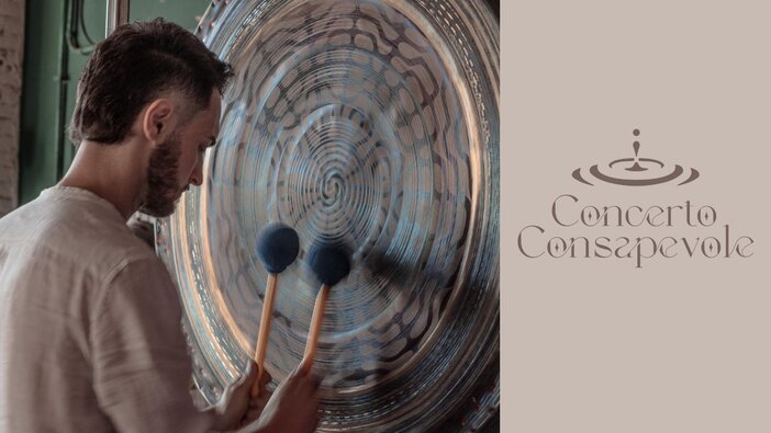 Il Concerto Consapevole è un progetto ideato e realizzato da uno degli artisti espositori, Federico Gelli, laurea in Pianoforte Jazz presso il Conservatorio Licinio Refice di Frosinone e specializzazione in Produzione musicale per cinema e videogames ma anche facilitatore di mindfulness e Gong Master.