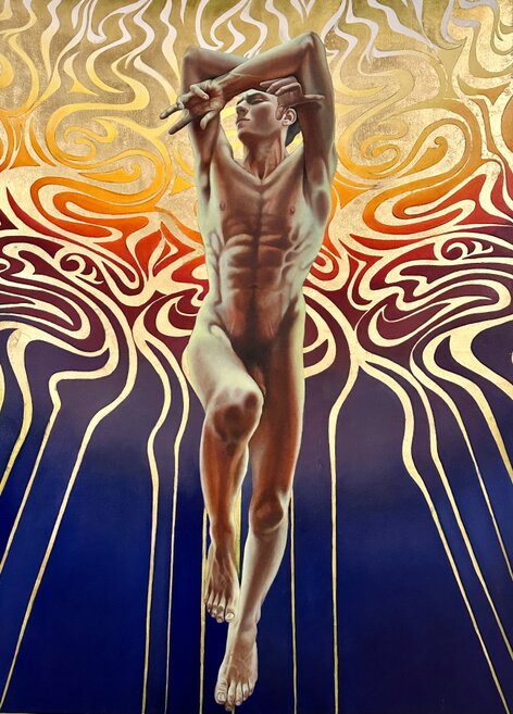 Ogni artista ha declinato il tema con personale sensibilità. Federico Gelli nelle due opere a colata acrilica, connette il “bambino interiore”, alba della vita, al suo divenire e permutare nella dimensione adulta cogliendo così tanto il Kairos, il momento propizio della crescita, quanto il Kronos ovvero il passare del tempo.