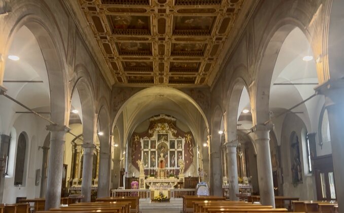 Interno Chiesa Arcipretale di Maria Assunta di Lentiai, visibile il soffitto a cassettoni opera di Cesare Vecellio (ph Loredana Gelli)