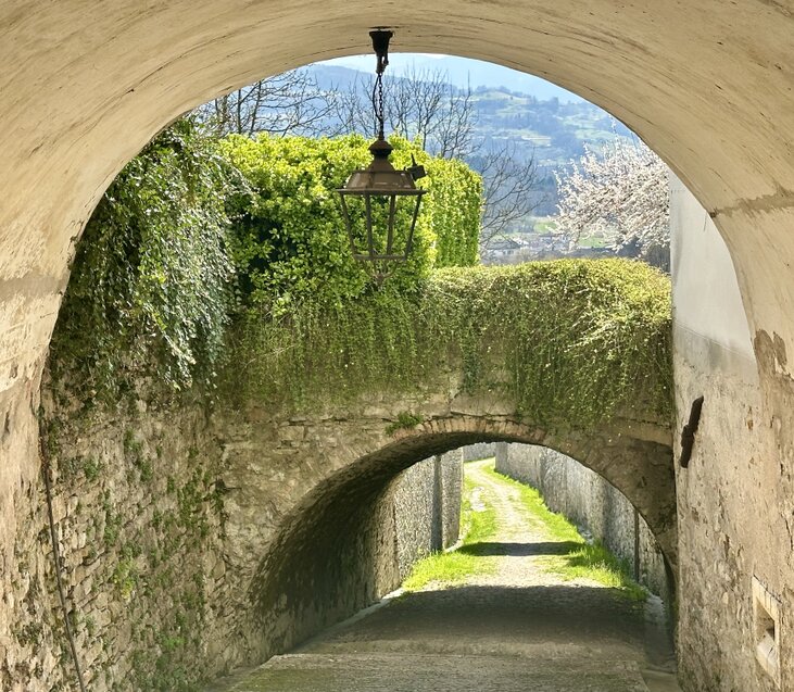 La Carèra di Mel, iconico passaggio caratterizzato da un grande arco a tutto sesto posto dietro il Palazzo Comunale - Borgo Valbelluna (ph Loredana Gelli)