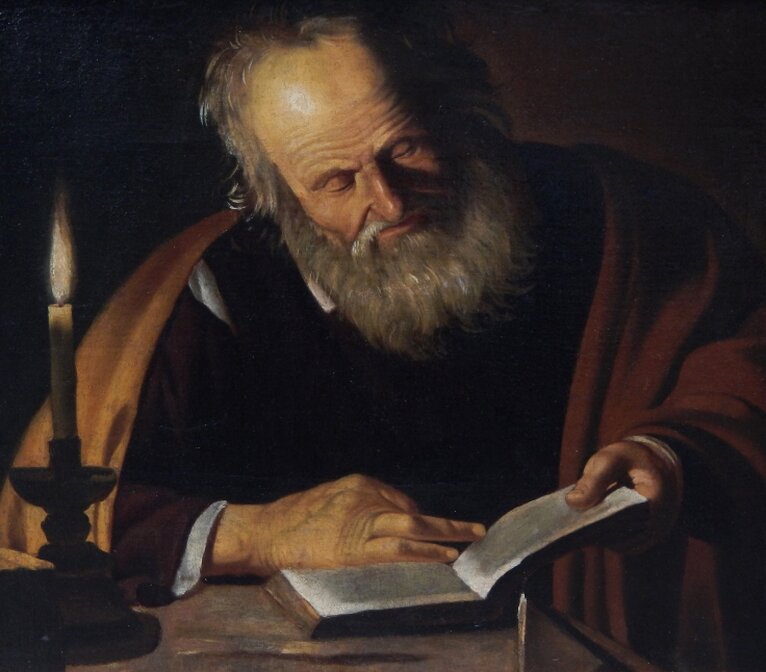 Gerrit van Honthorst, Lettura a lume di candela XVII sec. Olio su tela 64 x 73 cm. Collezione privata.