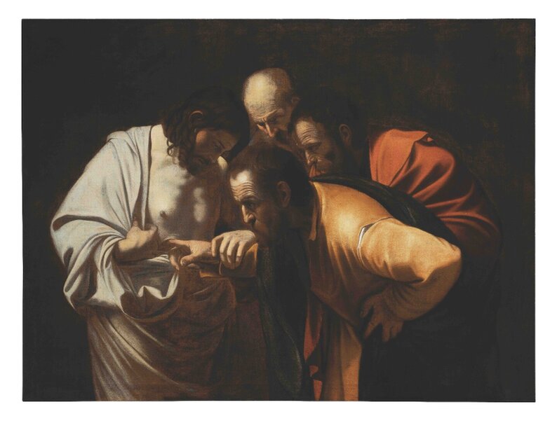 Michelangelo Merisi detto Caravaggio L’incredulità di San Tommaso 1600-1601, Olio su tela 118 x 156,5 cm Collezione privata