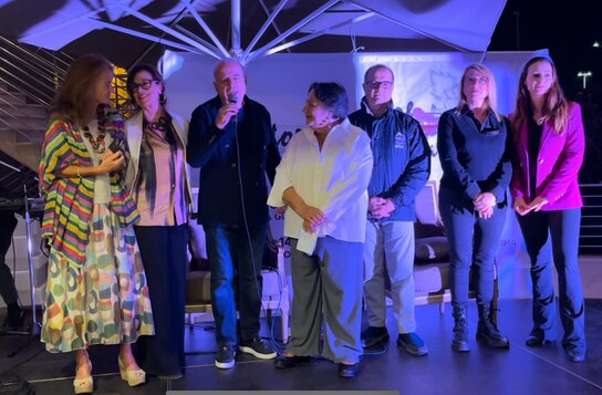 (Nella foto da sinistra la giornalista Francesca Alliata Bronner, Loredana Gelli, coordinamento organizzativo Music International Compound, Carlo Capria, Direttore artistico, Daniela Brancati ideatrice del format Scrittoridabere e Musicadassaggiare, Pino Larango Presidente Pro Loco Fiumicino, l’Assessora Pari Opportunità di Fiumicino Monica Picca, la Consigliera Comunale di Fiumicino e presidente commissione scuola, sport e cultura Federica Cerulli)