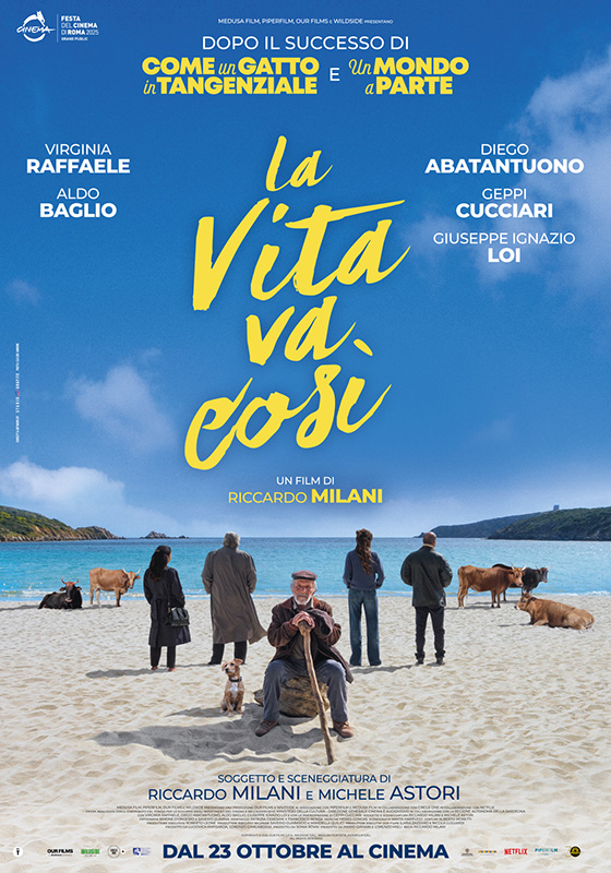 Perché andare a vederlo dal 23 ottobre in sala? Perché racconta la storia vera di Ovidio Marras. Perché fa riflettere sulla dignità e l’orgoglio di Efisio (Ovidio), un vecchio pastore sardo (interpretato da un vero pastore di Oristano ottantaquattrenne con la IV elementare, Giuseppe Ignazio Loi) che si ostina a difendere la sua casa e il suo territorio sfidando un grande immobiliarista di Milano (Diego Abatantuono in un ruolo “in cui non fa battute ma riflette”) che nel suo paradiso del sud della Sardegna vuol fare un resort a cinque stelle. Merita vederlo perché è una commedia civile ben scritta (dallo stesso Milani con Michele Astori) e “la commedia- come ha detto Abatantuono nel corso della conferenza stampa di presentazione- è la forza del cinema italiano: Scola, Monicelli, Risi e così via”. Merita perché la spiaggia di Tuerredda dove il pastore porta le sue vacche è una delle più belle del mondo. E poi c’è la figlia Francesca (Virginia Raffaele che da romana parla un sardo perfetto) divisa tra l’attaccamento alle tradizioni e al padre e la comunità del paese (Teulada), che vede nella costruzione del resort possibilità di lavoro e quindi l’uscita dalla miseria e dall’obbligo dell’emigrare per vivere. “Lavorare con Milani dopo “Un mondo a parte”, dove mi ero immersa, col ‘metodo Milani’, nella comunità di un paesino abruzzese, sono tornata a vivere una grande esperienza umana con la comunità di un paese sardo, che ugualmente mi ha presa e anche avere a che fare con persone vere, non attori, mi ha fatto crescere”. Altro bel personaggio è quello del capocantiere Mariano, interpretato da Aldo Baglio, conosciuto per essere da molti anni nel trio comico con Giovanni e Giacomo. Bene, anche con lui Milani riesce a trasformare un attore comico in un ottimo attore di commedia impegnata. Un cameo la partecipazione di Geppi Cucciari, che è l’integerrima giudice che deve dire la sua sulla causa che il vecchio Efisio ha intentato contro la multinazionale che ha riempito di cemento i terreni intorno alla sua casa. La storia di quel pastore non è ancora finita. Marras, che rifiutò più di 10 milioni di euro, non c’è più, ma “La vita va così”, ce lo rende un eroe per sempre. Così fanno i film.