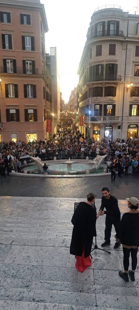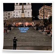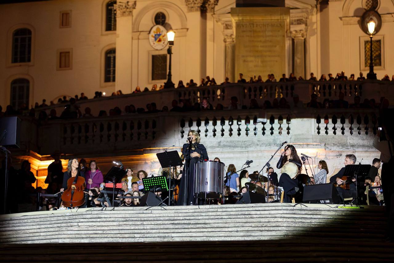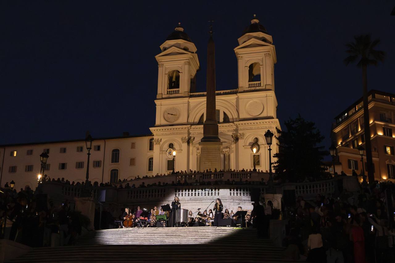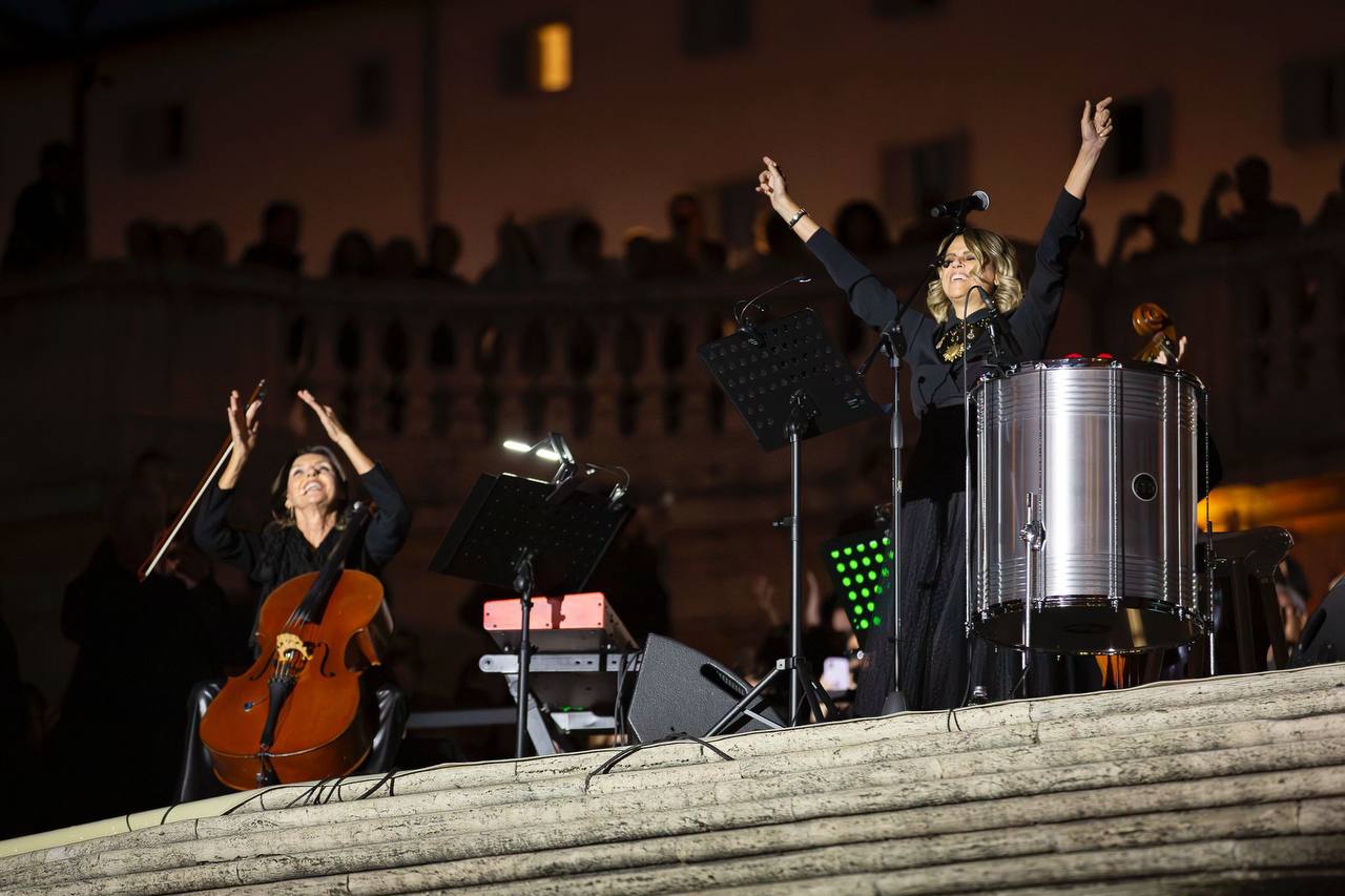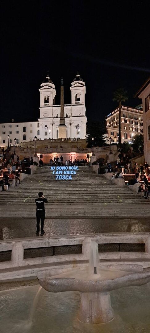 Piazza di Spagna non e' stata solo illuminata dai volti di oltre cinquanta donne del cinema mondiale e dello spettacolo , proiettati sulla scalinata ma ha ospitato la performance dal vivo di Tosca.Lo scopo?