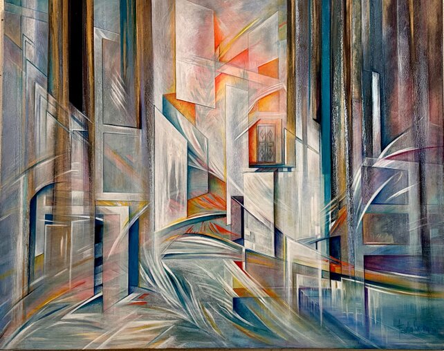 “La porta chiusa” olio e acrilico su tela, 100x80 di Fiorella Saura