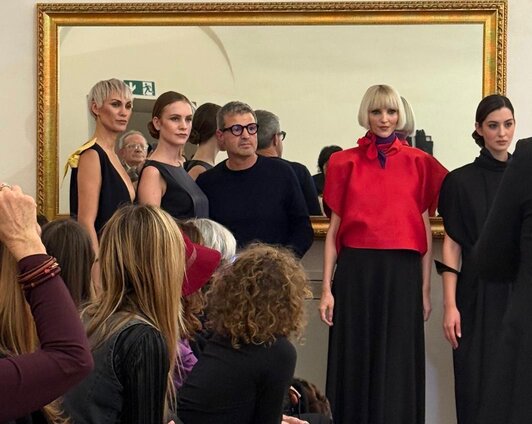 Il cerchio, il quadrato, il triangolo. Le prime forme che impariamo a riconoscere da bambini sono le fonti di ispirazione per la collezione F/W 25-26 di Vittorio Camaiani “La mia strada”. Lo stilista marchigiano mescola in questa collezione questo motivi d’ispirazione con la sua nota passione per il futurismo e il surrealismo, realizzando una collezione sofisticata e “geometrica” dal giorno alla sera attraverso linee rigorose che però si adattano alle forme del corpo.