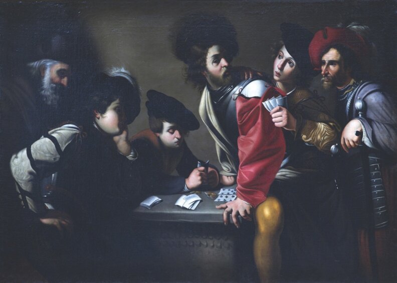 Bartolomeo Manfredi I giocatori di carte XVII sec. Olio su tela 138 x 196 cm. Collezione privata.